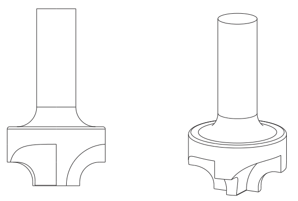 شکل 2- نمای انتهایی یک فرز انگشتی برش مرکزی و غیرمرکزی