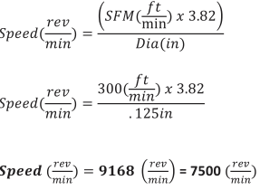 ابزار با یک سرعت چرخشی مشخص در ماده حرکت میکند که با دور در دقیقه (RPM) و نرخ فرو رفتن اینچ در دقیقه (IPM) مشخص میشود. احتمالا آزاردهنده ترین مساله برای ماشینکارهای مبتدی CNC، انتخاب سرعت مناسب برش و فرو رفتن است. این انتخاب در واقع بر روی CNC، سخت تر از فرزکاری دستی است. زیرا با استفاده از فرز دستی، اپراتور میتواند فشار برش را احساس کند و میزان فرو رفتن را بر اساس فشار برش روی قطعه تغییر دهد.