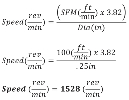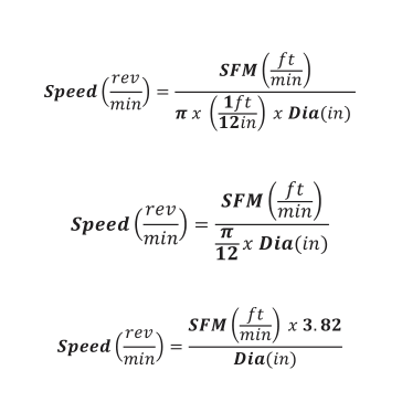 از آنجا که ابزار برش به وسیله قطر آنها به اینچ مشخص میشوند، این فرمول به صورت زیر بازنویسی و ساده میشود: