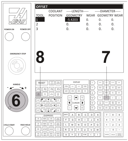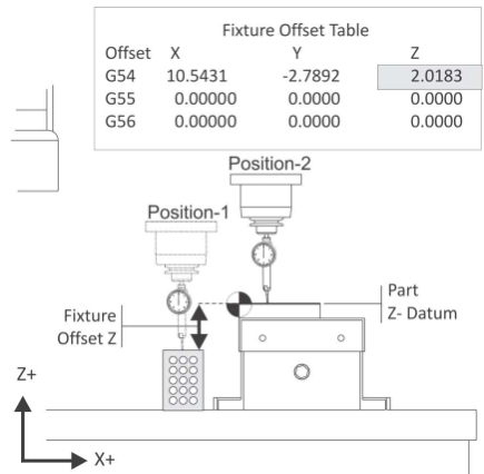 کنترل CNC، افست Z نگهدارنده و افست طول ابزار فعال را با یکدیگر جمع میکند تا فاصله نوک هر ابزار از خانه تا مبدا Z روی قطعه را محاسبه کند.