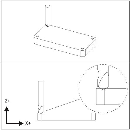 به دلیل اینکه نوک فرز پخ، تیز نیست، در صورتی که ابزار را مانند یک فرز انتهایی تنظیم کنید، عرض پخ ممکن است بیش از انتظار باشد. برای جلوگیری از برش عمیقتر، افزایش TLO به میزان 0.010 اینچ را پس از تنظیم آن در نظر بگیرید. سپس پخ را ماشینکاری کرده، اندازه آن را بررسی کنید و TLO را به اندازه نیاز برای ایجاد پخ با عرض صحیح، کم کنید.