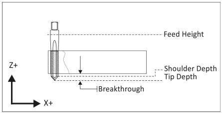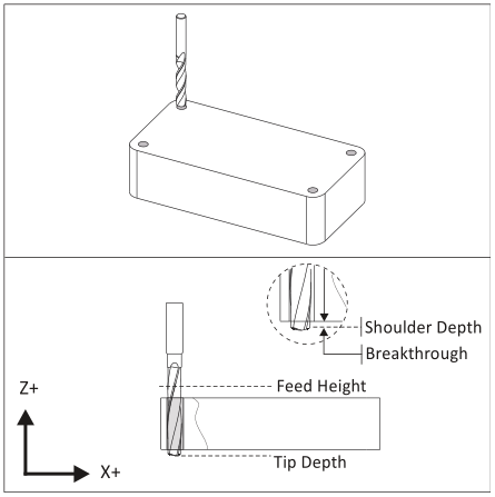 ارتفاع فرورفتن (Feed Height) آخرین ارتفاعی است که ابزار قبل از آغاز فرورفتن برای برش به سمت آن میرود. این ارتفاع، معمولا به اندازه یک اینچ با دقت سه رقم بالاتر از بالای تکه قرار میگیرد. حرکت سریعی پایینتر از ارتفاع اتفاق نمیافتد.