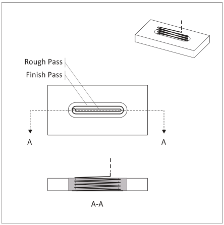 - مسیرهای محفظهای مارپیچی که در نزدیکی مرکز محفظه شروع میشوند و در جهت خلاف عقربههای ساعت، به خارج حرکت میکنند، بهترین گزینه هستند، زیرا باعث میشوند ابزار دائما برش را صعود دهد.