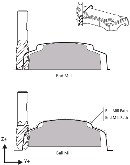 مسیرهای سهبعدی، نوک مرکزی ابزار را کنترل میکنند. شکل 1، نحوه تغییر مسیرابزار بر اساس فرم ابزار را نشان داده و آن را مقایسه میکند.