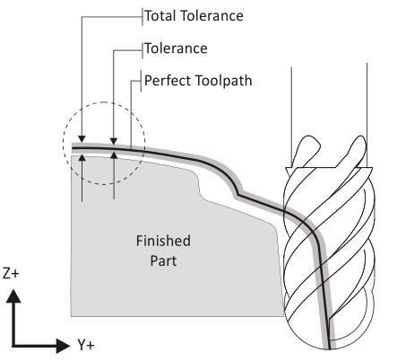 تولرانس های برش و فیلتر، قابل جمع بستن هستند. به عنوان مثال، در تولرانس برش 0.0005 و تولرانس فیلتر 0.001، مسیرابزار می تواند به میزان 0.0015 اینچ در هر طرف از مسیر ایدهآل تئوریک فاصله بگیرد.